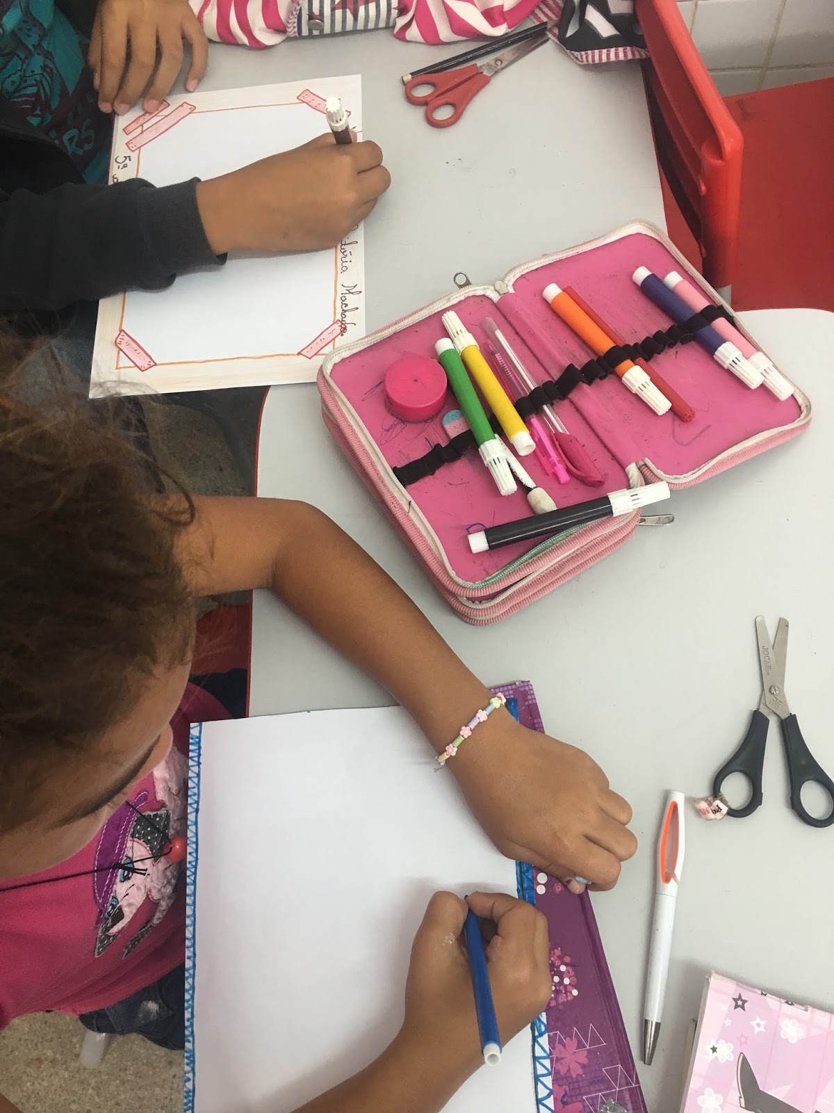 Cada aluno(a) recebe o livro e leva para casa a maleta com um livro e uma folha onde ele(a) terá três dias para ler e escrever o que achou da história. Estimulamos a escrita e a leitura.